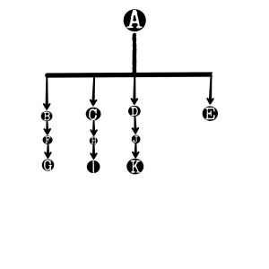 उदाहरण: यहां दिए गए चित्र -1 में B, F और G मि. A की डाउनलाइन है H और I मि.C किड डाउनलाइन है  B, C, D, और E,मि,A की डायरेक्ट डाउन लाइन है J, मि. D की डायरेक्ट ऑनलाइन है
